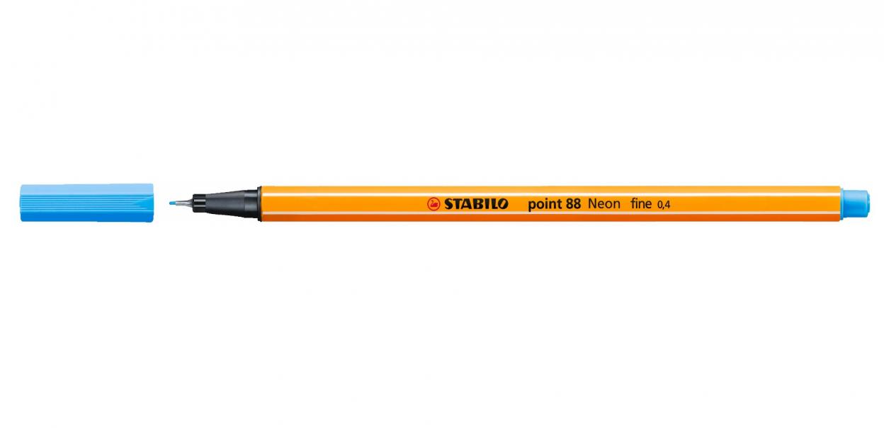 Uniwersalny cienkopis do pisania, podkreślania, kreślenia i kolorowania. Mocna, oprawiona w metal końcówka jest odporna na złamania i rozwarstwienia, co gwarantuje wysoki komfort pisania aż do całkowitego wyczerpania tuszu. Grubość linii 0,4 mm. Wentylowana skuwka umożliwia oddychanie w przypadku nagłego połknięcia. Jedyny cienkopis dostępny aż w 47 kolorach. Kolor neonowy niebieski