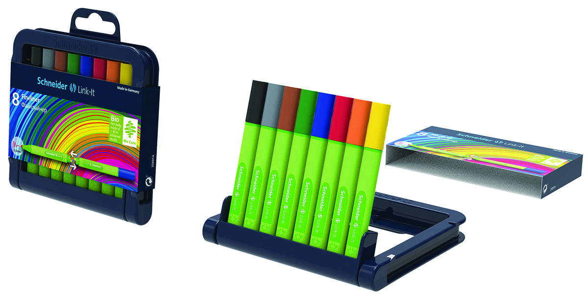 Opakowanie Cienkopis Schneider Link-It, 0,4 mm, stojak - podstawka, 8 szt. miks kolorów