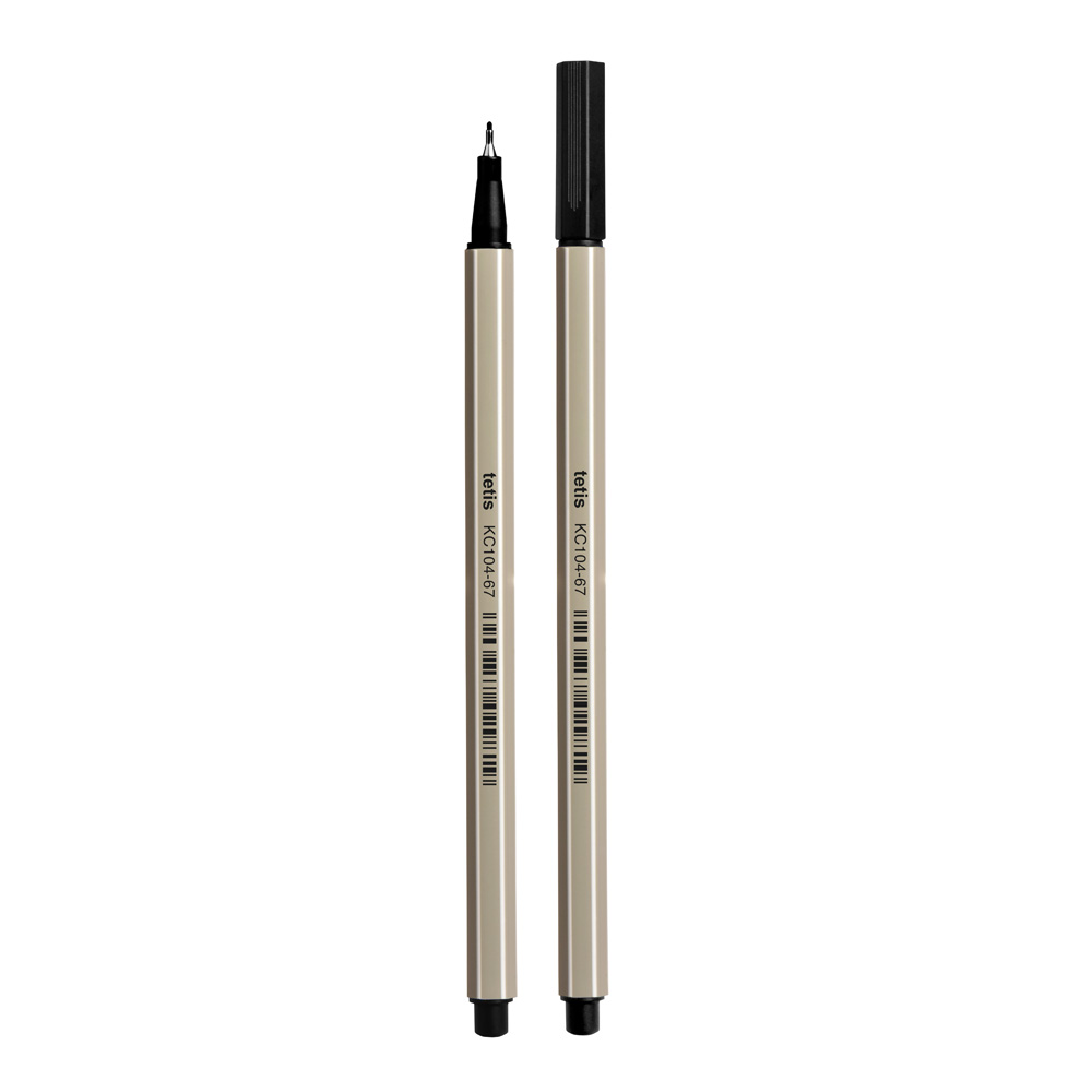 Cienkopis heksagonalny,grubość końcówki 0,7 mm, grubość linii pisania 0,4 - 0,5 mm (blister 4 szt. czarny). Nietoksyczny tusz. Wentylowana skuwka. Odporna na złamanie końcówka. Fibrowa końcówka zapewnia precyzyjną linię pisania.