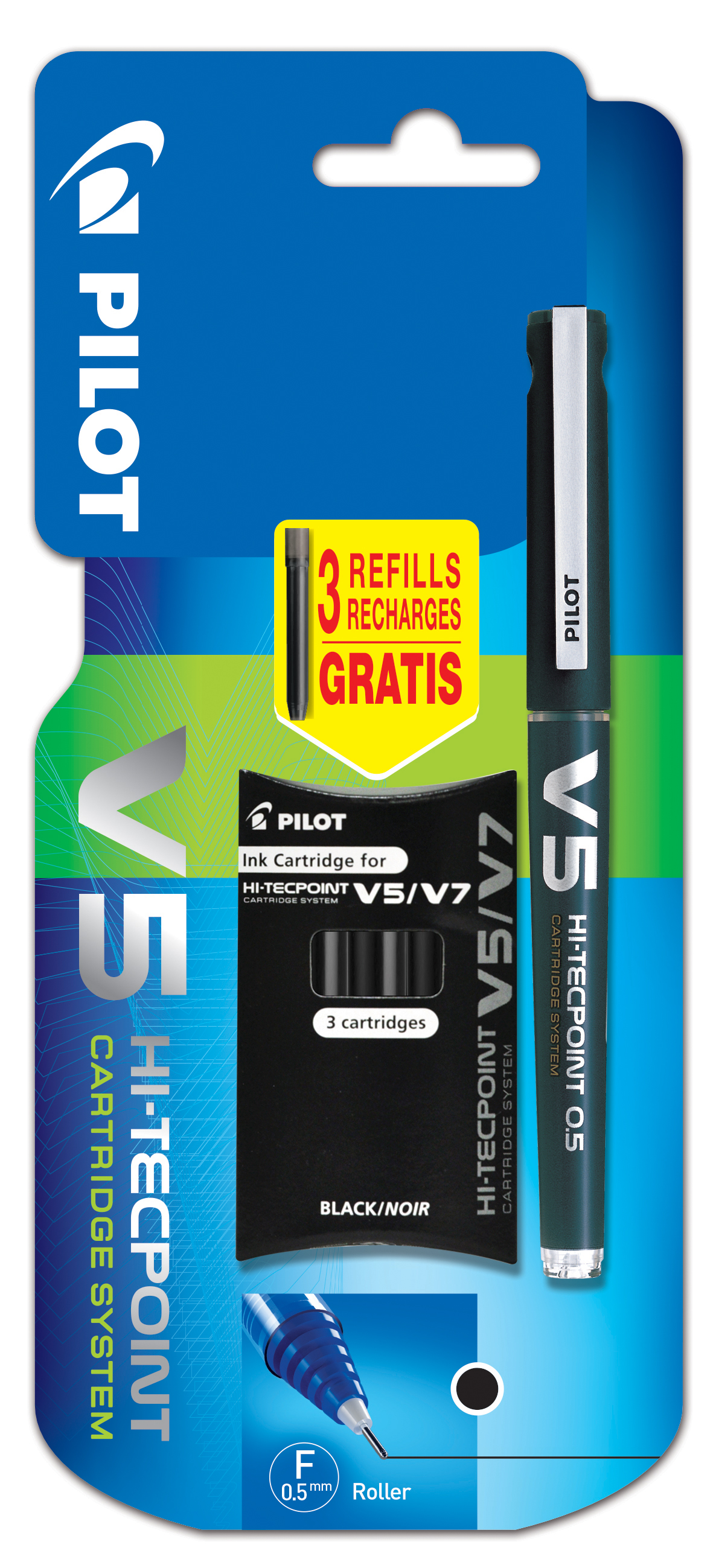 Cienkopis V5 na naboje czarny + wkłady PILOT