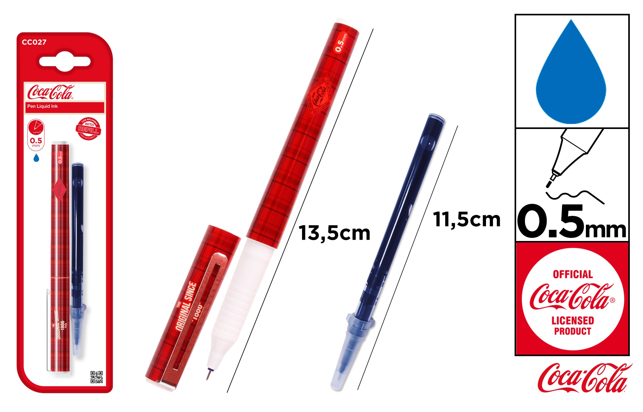 Cienkopis z wkładem wymiennym 0,5mm z logo Coca-Cola blister