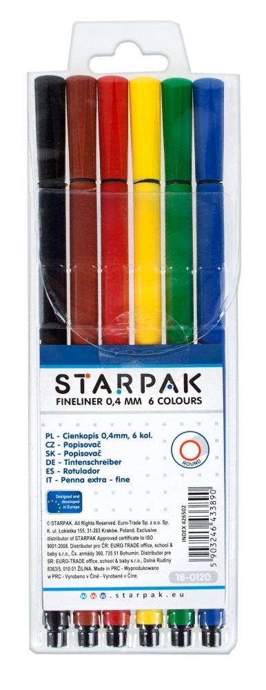 Smukłe, tradycyjne cienkopisy dostępne w 6 kolorach o grubości linii pisania 0,4mm. Możliwość wielu kolorów sprawi że dzień w pracy czy w szkole będzie barwniejszy, a przez to przyjemniejszy. Cienkopisy przeznaczone do precyzyjnego pisania, rysowania oraz podkreślania. Zapoznaj się również z innymi produktami Starpak! Cienkopisy posiadają ergonomiczny, wyprofilowany uchwyt zapewniający komfortowe pisanie. Pewna, oprawiona w metal końcówka pisząca oraz specjalna skuwka chroniąca cienkopis przed wyschnięciem. Cienkopisy zapakowane w przeźroczyste etui. Wyprodukowane w Polsce. Przeznaczone dla dzieci w wieku: 3+. Cienkopis o długości 16 cm.