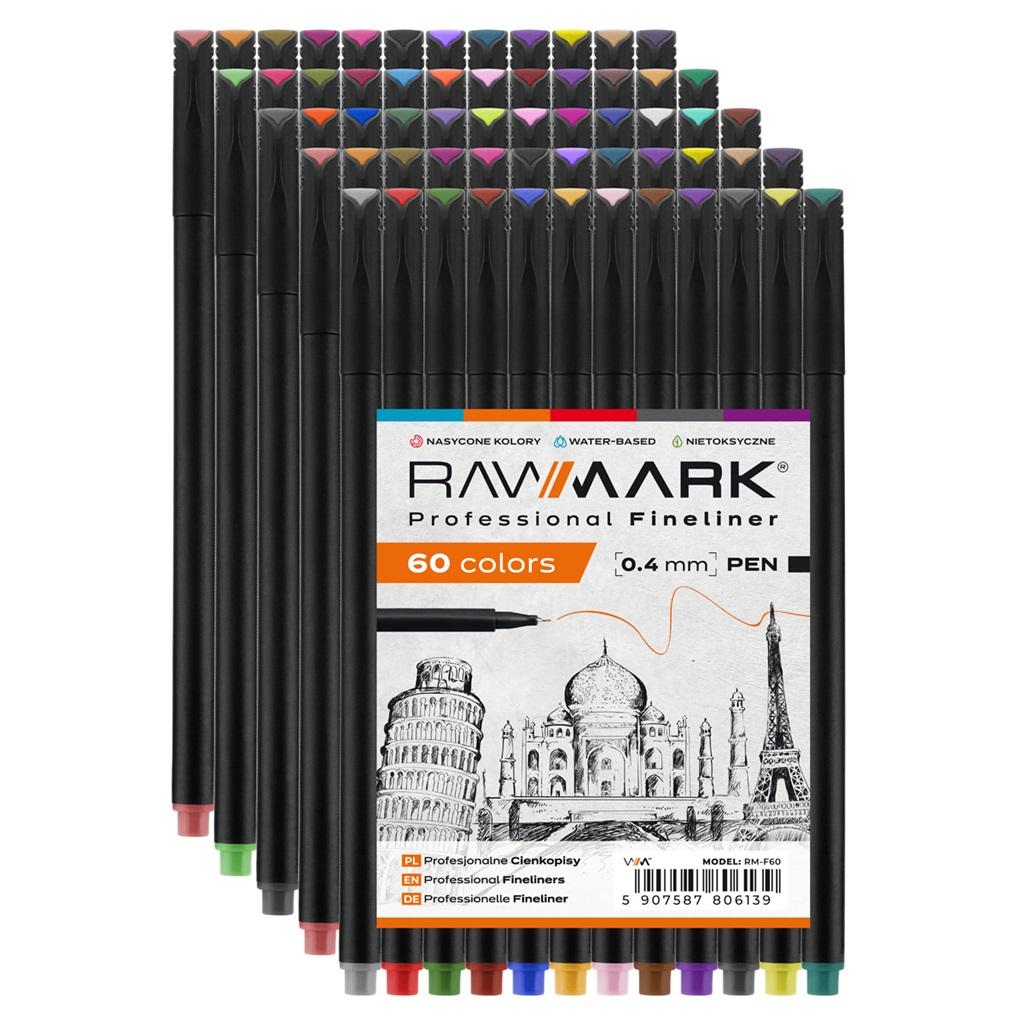 Cienkopisy RAWMARK zestaw 60 kolorów cienki 0.4 Zestaw artystyczno-piśmienniczy Rawmark idealny dla artystów, ilustratorów, pracowników biurowych i uczniów. Dla każdego ! Profesjonalny cienkopis do pisania, podkreślania, kreślenia i kolorowania o grubości linii: 0,4 mm Mocna, oprawiona w metal końcówka jest odporna na złamania i rozwarstwienia, co gwarantuje wysoki komfort pisania aż do całkowitego wyczerpania tuszu. INTENSYWNE KOLORY Cienkopisy dzięki specjalnemu tuszowi od Rawmark świetnie oddają kolor na papierze. Profesjonalny tusz szybkoschnący, dzięki czemu nie rozmazuje się na papierze. Tusz: Na bazie wody Bezkwasowy Nietoksyczny Ekologiczny Specyfikacja: Grubość linii: 0,4 mm Ilość kolorów: 48 Szczelna skuwka Metalowa końcówka Idealne do: Szkicowania Rysowania Kolorowania Kreślenia Pisania