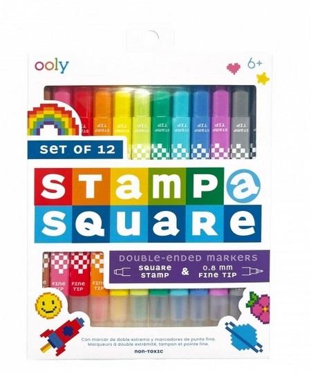 Cienkopisy dwustronne, z pieczątkami w kształcie pikseli, Stamp-A-Square Zestaw 12 kolorów