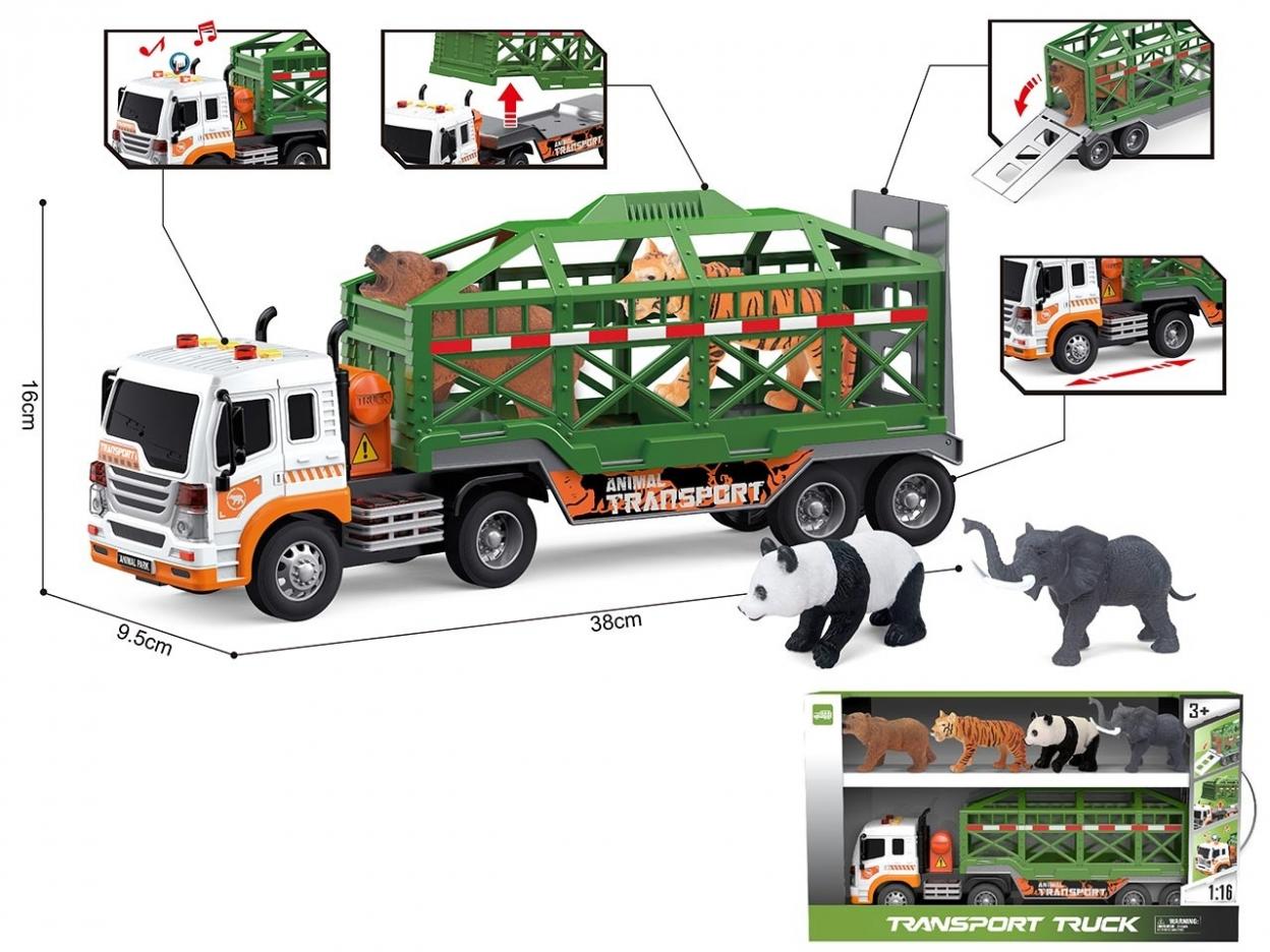 Ciężarówka 1:16 + autka x4 światło dźwięk