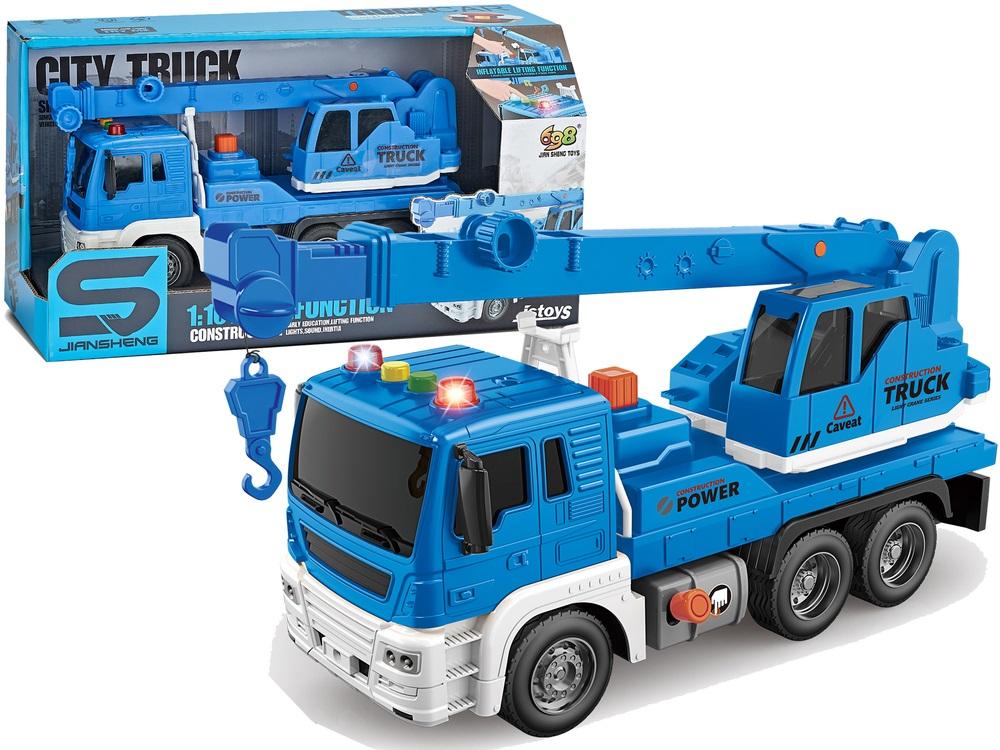 Ciężarówka Dźwig Budowa 1:16 Niebieska Dźwięk Pora wziąć się do pracy! Żaden z placów budowy nie będzie kompletny, jeśli zabraknie na nim dźwigu. Sprawdzi się podczas wielu scenariuszy zabaw: w plac budowy, mechanika czy wyścigi. Zabawa z jej wykorzystaniem wpłynie na wyobraźnię i kreatywność dziecka, a także umiejętność logicznego myślenia. Dźwig, który maluch nieraz widuje na drogach, lub budowach wzbudza jego zainteresowanie. Samochód wyposażony jest w ruchomy dźwig, który można podnosić oraz kręcić nim na boki. Dzięki możliwości poruszania dźwigiem Twoje dziecko może za jego pomocą podnosić mniejsze zabawki, a następnie wysypać je w innym miejscu. Obrotowa kabina zapewnia większy zasięg. Pojazd posiada frykcyjny napęd tylnej osi na popych, wystarczy nacisnąć na tył, puścić do przodu i cieszyć się prędkością. Aby unieść dźwig należy naciskać pomarańczowy przycisk na naczepie, długie ramie będzie miało większy zasięg. Aby wróciło do poprzedniego stanu, należy pociągnąć za drążek. Materiały, których użyto do jej wyprodukowania, są bardzo wysokiej jakości, co pozytywnie wpływa na wytrzymałość i jakość zabawki. Wymiary pojazdu: 28 cm x 14 cm x 10 cm Wymiary opakowania: 30 cm x 29 cm x 10 cm. Auto zasilane jest trzema bateriami AG13 (w zestawie). Zabawka przeznaczona jest dla dzieci powyżej 3. roku życia. Zestaw posiada certyfikat CE i jest zgodny z normą EN 71. Zapakowany jest w kartonik z przezroczystą witrynką, dzięki czemu nadaje się idealnie na prezent.