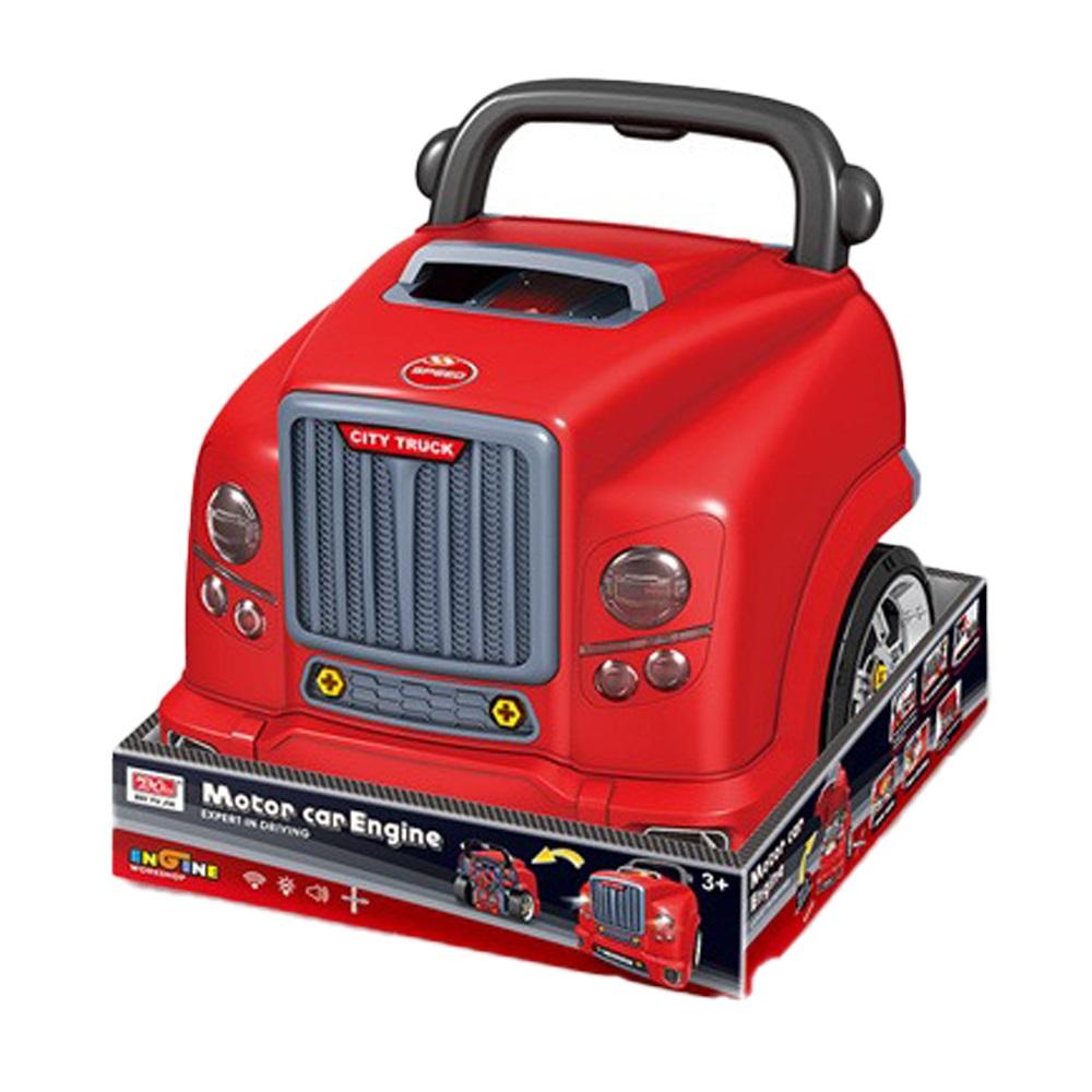 Ciężarówka w warsztacie samochodowym 59 elem. Pod maską mnóstwo akcesoriów do przykręcania, efekty świetlne i dźwiękowe. Wymiary: 35 x 34.5 x 37.5 cm, zasilanie 3xAA (brak w zestawie)