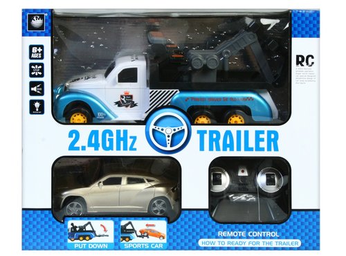 Ciężarówka holownicza znajdująca się w zestawie jest sterowana pilotem. Po naciśnięciu przycisku na pilocie dźwig holowniczy opuszcza się i można ustawić na nim samochód do holowania. W ciężarówce świecą światła i wydaje różne dźwięki np. przy opuszczaniu holownika. Auto ciężarowe jeździ w wielu kierunkach i obraca się o 360 stopni. Zestaw zawiera: samochód ciężarowy, pilot do sterowania oraz samochód osobowy do holowania. Produkt wykonany plastiku. Przeznaczony dla dzieci od lat 6. Wymaga zasilania bateriami: ciężarówka 6xLR6 dołączono), pilot 2xLR6.
