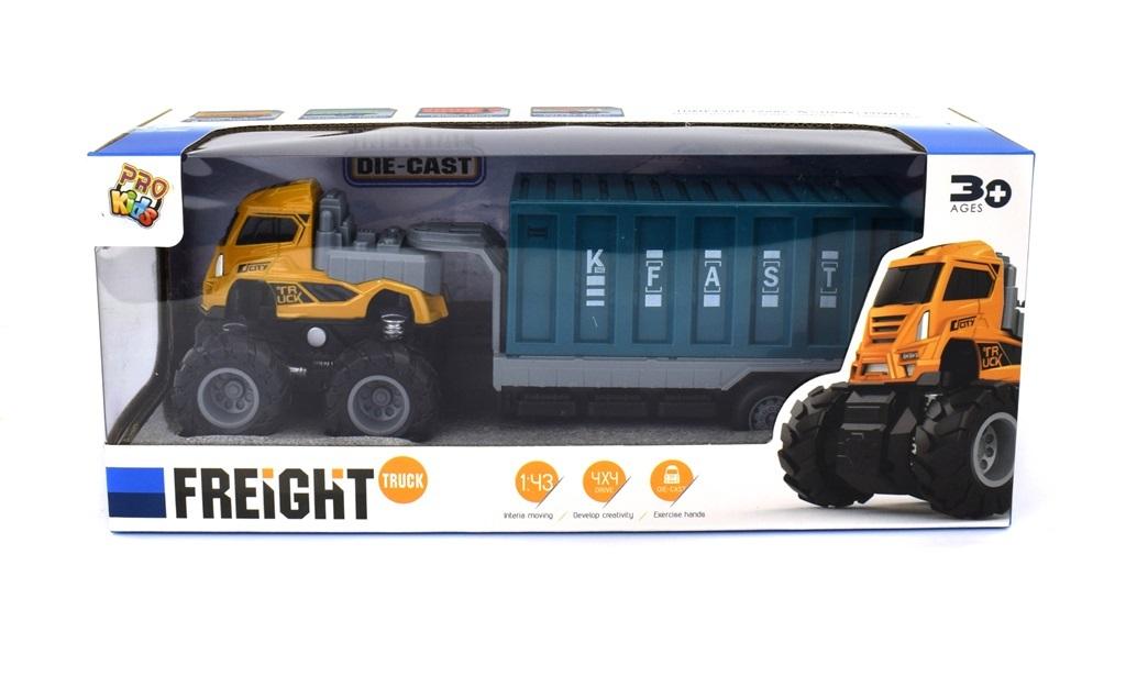 Ciężarówka metal z lawetą i kontenerem to idealna zabawka dla każdego dziecka. Kontener otwierany z tyłu.
