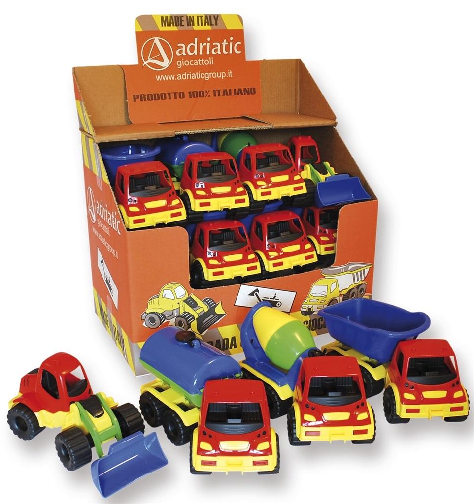 Mała ciężarówka do zabawy dla dziecka wyprodukowana przez firmę Adriatic charakteryzuje się estetycznym i trwałym wykonaniem. Za sprawą wytrzymałego tworzywa, doskonale znosi różne warunki i może służyć przez niebywale długi czas. Ta niewielka zabawka zaskakuje swoją funkcjonalnością! Ciężarówki dostępne są w 4 wariantach - wywrotki, beczkowozu, ładowarki i betoniarki. Zabawki zapakowane są w kartonie jako display.