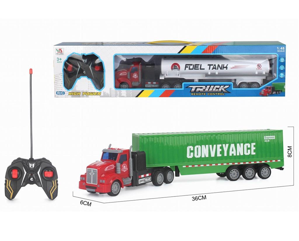 Ciągnik z naczepą na radio.