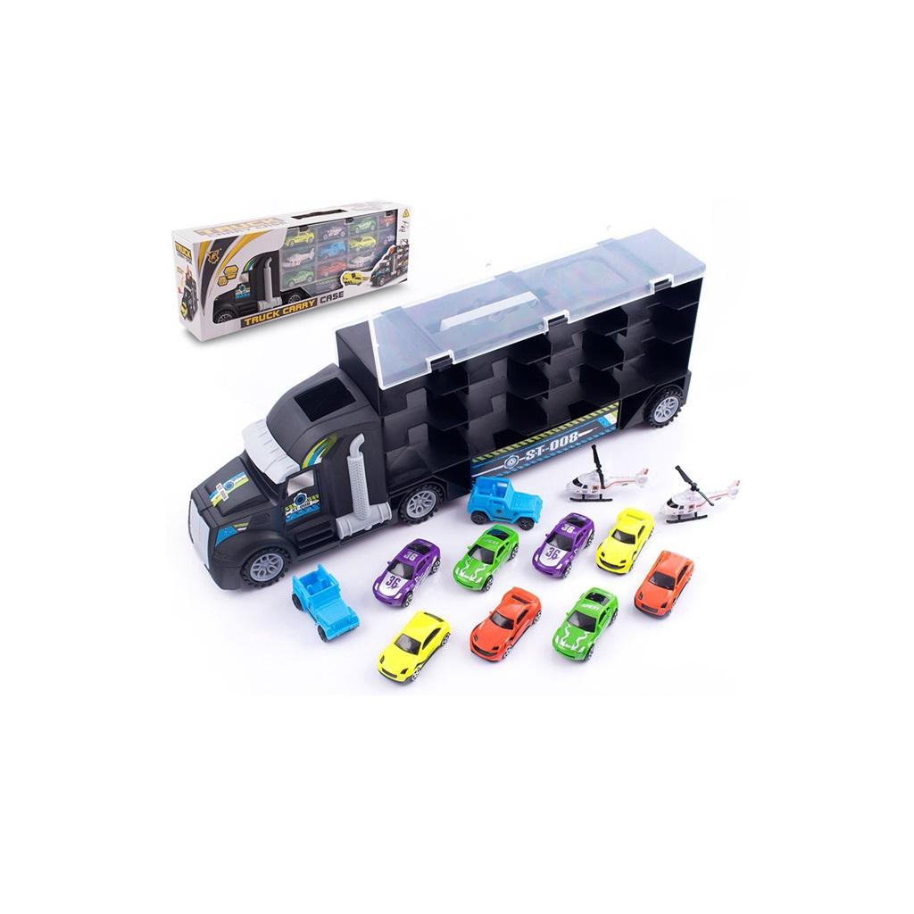 Tir z małymi samochodzikami, walizka do przenoszenia resoraków