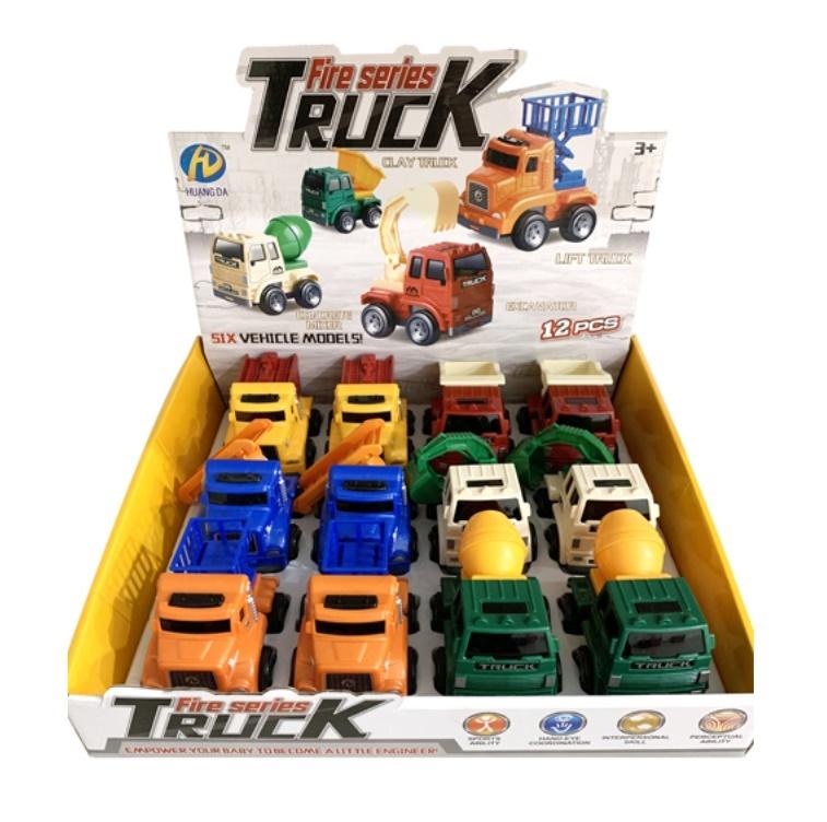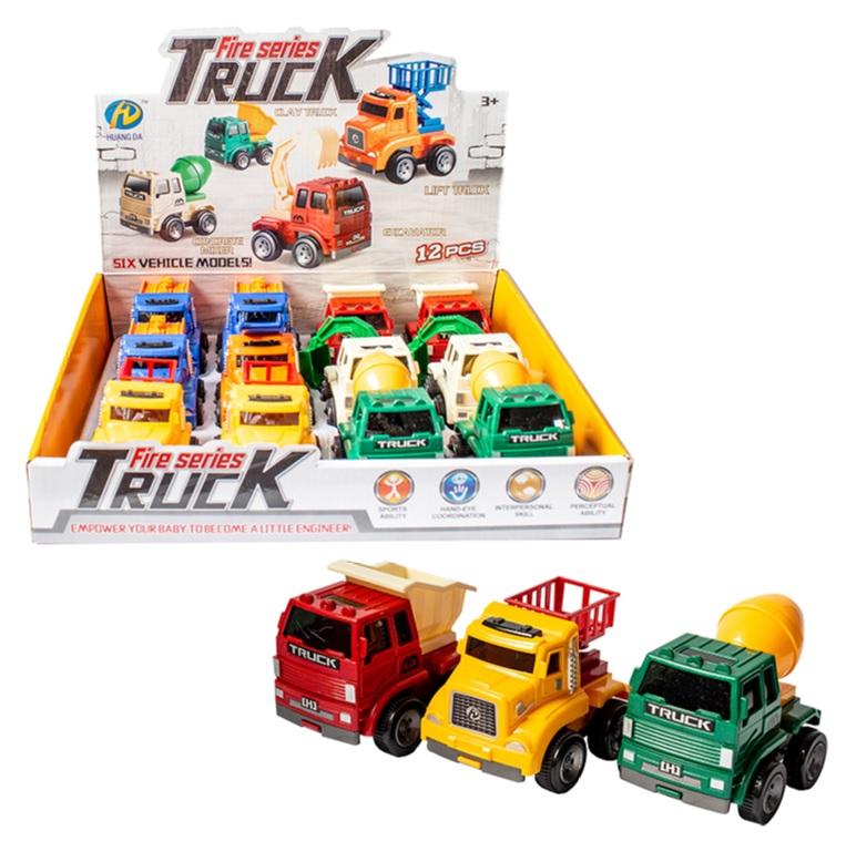 Kolorowe ciężarówki z napędem do zabawy dla dzieci powyżej 3-go roku życia.