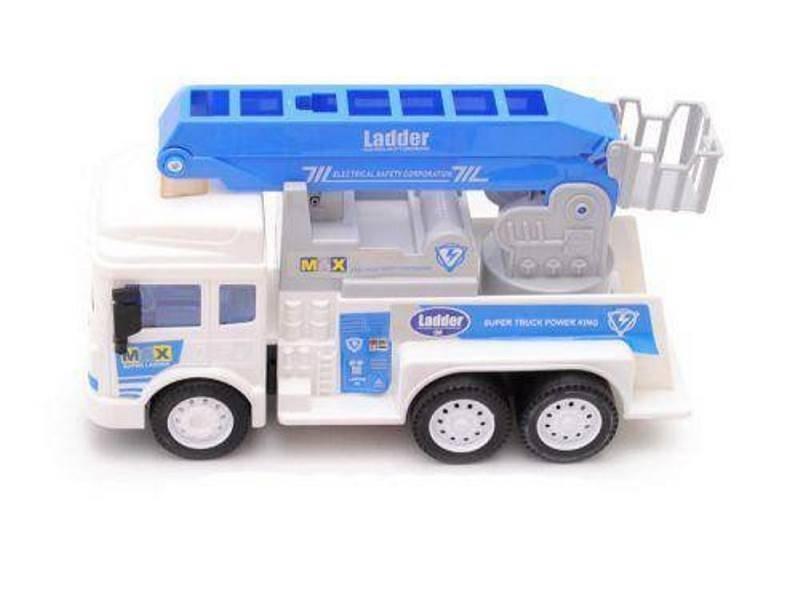 Samochód ciężarowy z wyciąganą drabiną w kolorze biało-niebieskim.Dla dzieci powyżej 3 roku życia.