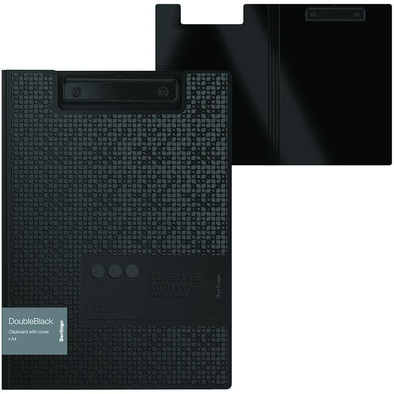 Clipboard Berlingo z serii DoubleBlack. Format A4 w kolorze czarnym z błyszczącym wzorem zrobionym lakierem UV. Czarny kolor wewnętrznej powierzchni. Czarny kolor klipsa. Wykonany z wysokiej jakości polipropylenu o matowej powierzchni z teksturą "piasku", na której nie widać odcisków palców i małych zadrapań. Przeznaczony do przechowywania dokumentów. Grubość: 1300mikronów. Folder może pomieścić do 160 arkuszy.