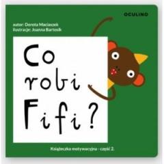 Co robi Fifi? to druga część serii książeczek motywacyjnych. Wspomoże w akceptacji korekcji i rehabilitacji wzroku, a bohater bliski dziecku z problemami ocznymi umili mu codzienną niełatwą terapię.Co robi Fifi? Siedzi czy stoi? Czy potrafisz zrobić to co Fifi? Czy potrafisz złapać się za uszy? Zamknij jedno oczko, a potem drugie. Fifi ma serduszko, a gdzie jest Twoje serce?Zobacz! Fifi ćwiczy oczka tak jak Ty!