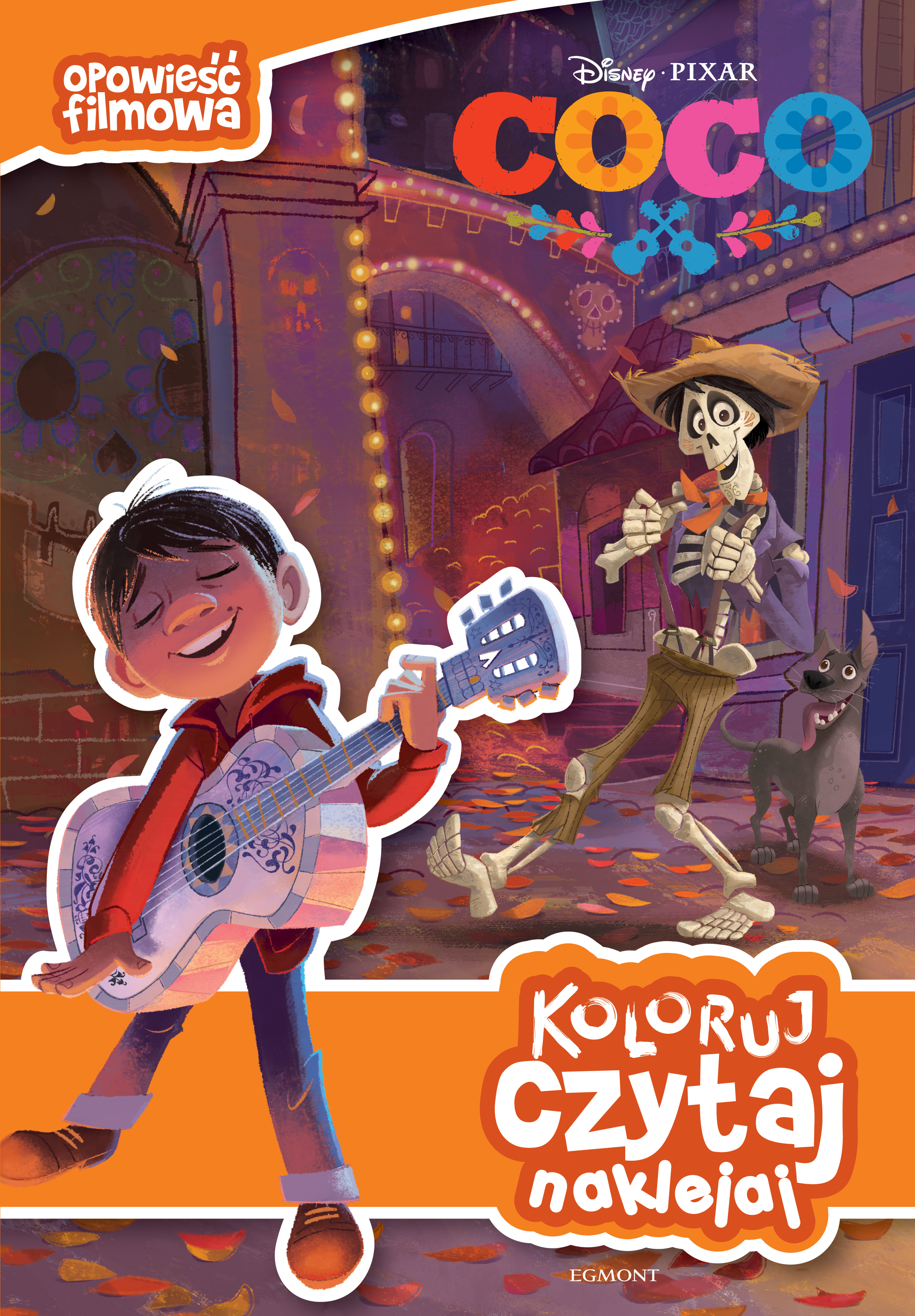 W rodzinie Miguela od pokoleń muzyka jest zakazana. Jednak chłopiec marzy o tym, by pójść w ślady swojego idola, wielkiego muzyka Ernesta de la Cruza. Dwunastolatek chce udowodnić światu, że on sam także ma talent. Kiedy nadchodzi Día de los Muertos (Dzień Umarłych), Miguel trafia do bajecznie kolorowej Krainy Umarłych, gdzie ma szansę rozwikłać rodzinną tajemnicę i na nowo zjednoczyć swoich bliskich. Ta wyjątkowa historia przeniesie cię do zupełnie innego świata, pełnego niewiarygodnych przygód i zaskakujących zwrotów akcji. Spotkasz niezapomnianych, oryginalnych bohaterów, wzruszysz się i uśmiejesz do łez. Przeczytaj tę zabawną i ciepłą opowieść o poszukiwaniu swoich przodków. Pokoloruj bohaterów lub poszukaj ich wśród naklejek. Dodaj barw tej niezwykłej historii i baw się dobrze!