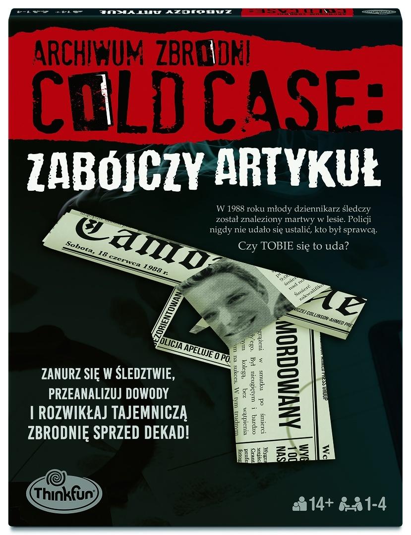 ThinkFun ARCHIWUM ZBRODNI COLD CASE: Zabójczy Artykuł to wciągająca gra detektywistyczna, która przenosi graczy w sam środek nierozwiązanej sprawy sprzed lat. Wciel się w śledczego analizującego akta - każdy dokument, zdjęcie lub notatka mogą być kluczem do odkrycia prawdy!