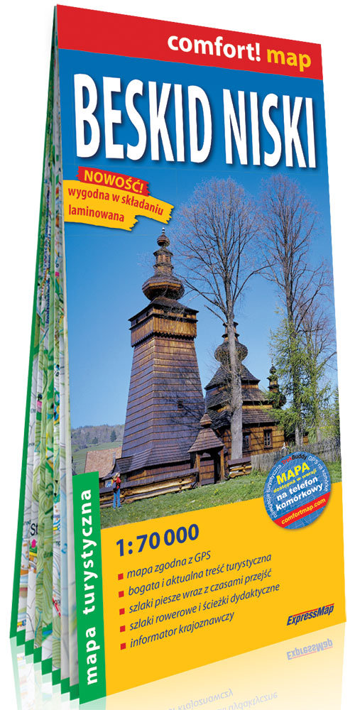 Doliny nieistniejących już wsi, wpisana na listę UNESCO cerkiew św. Paraskewy w Kwiatoniu, renesansowy dwór obronny w Szymbarku, cmentarze z okresu I wojny światowej czy skansen łemkowski w Zyndranowej to tylko niektóre interesujące miejsca w Beskidzie Niskim. Dwustronnie laminowana, wygodna w składaniu mapa turystyczna Beskidu Niskiego pomoże odnaleźć ich znacznie więcej. Publikacja została opracowana we współpracy z doświadczonymi krajoznawcami z regionu. Cechy mapy: • dogodna zarówno dla pieszego, jak i rowerzysty skala 1:70 000 (1 cm – 700 m), • bogata treść turystyczna, • zgodność z GPS – współrzędne geograficzne w układzie WGS-84. Na mapie m.in.: • szlaki piesze i czasy przejść, szlaki rowerowe, ścieżki dydaktyczne, muzea, zabytki i inne interesujące obiekty, • obiekty noclegowe: schroniska młodzieżowe, kempingi, pola namiotowe, hotele i pensjonaty, • parki narodowe i krajobrazowe, rezerwaty przyrody, atrakcje przyrodnicze, • cieniowanie plastycznie pokazujące ukształtowanie terenu, • informator krajoznawczy.
