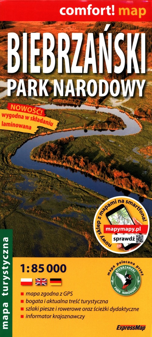 Pieszo, rowerem, konno czy może kajakiem dolina rzeki Biebrzy to idealne miejsce na aktywny wypoczynek. To także ostoja dzikiego ptactwa oraz dom wielu innych zwierząt. Na naszej dwustronnie laminowanej, wygodnej w składaniu mapie turystycznej Biebrzańskiego Parku Narodowego znajdziecie nie tylko różne rodzaje szlaków, lecz także opisy flory i fauny. Publikacja została opracowana we współpracy z krajoznawcami z regionu.
