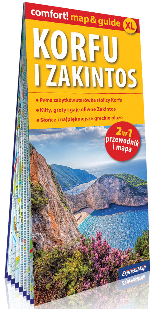 Pełna zabytków starówka stolicy Korfu Klify, groty i gaje oliwne Zakintos Słońce i najpiękniejsze greckie plaże Wyspy Odyseusza z zachodnioeuropejską nutką: weneckimi twierdzami, neoklasycystycznymi pałacami i… polem do krykieta wytyczonym przez Anglików. Wiekowe klasztory ozdobione freskami. Kosmopolityczne kurorty oraz senne, górskie i rybackie przysiółki, w których czas zatrzymał się sto lat temu. Wypoczynek na rajskich plażach, a dla aktywnych – górskie wędrówki obfitujące w piękne widoki. I oczywiście doskonałe tawerny serwujące pyszne świeże ryby. Comfort! map&guide XL „Korfu i Zakintos” pomoże odkryć największe atrakcje najbardziej zielonych greckich wysp. Map&guide w nowej odsłonie – większy format i jeszcze więcej treści: - zajmujące opisy kilkudziesięciu niezwykłych miejsc wartych odwiedzenia, - łatwa nawigacja: atrakcje z przewodnika ponumerowane i zaznaczone na mapach, - poręczny format, wygoda składania i trwałość, - mapy w dogodnych dla turysty skalach – Korfu (1:110 000), Zakintos (1:80 000), plany miast: Korfu (1:10 000), Zakintos (1:12 500), - przydatne informacje praktyczne: dni i godziny otwarcia obiektów, wskazówki dotyczące transportu - informacje o lokalnej kuchni, - ciekawostki i kolorowe fotografie. Seria comfort! map&guide to wyjątkowe połączenie mapy i przewodnika, idealne na krótki wyjazd. Wygodne, praktyczne i treściwe: z opisami kilkudziesięciu najciekawszych miejsc, gotowymi trasami zwiedzania, bogatymi informacjami praktycznymi i świetną kartografią. Publikacje mają poręczny format, są łatwe w składaniu, a dzięki laminacji również wyjątkowo trwałe.