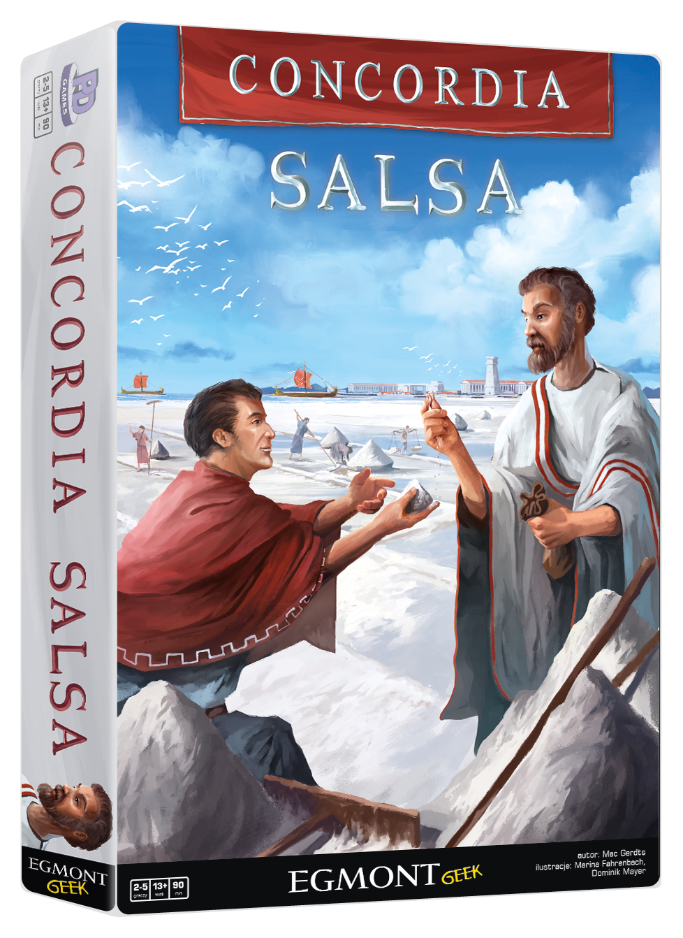 Dodatek do Concordii – bestselleru z linii Egmont Geek! Bardzo dobre oceny graczy! Wprowadza nowe możliwości strategiczne! CONCORDIA SALSA to długo oczekiwany dodatek do przebojowej Concordii. Gra zyskała uznanie wśród graczy dzięki łatwym do wytłumaczenia zasadom, bardzo przyjemnej niekonfliktowej rozgrywce i dużej głębi strategicznej. CONCORDIA SALSA to największe dotychczas wydane rozszerzenie do wielokrotnie nagradzanej gry CONCORDIA. W pudełku są 3 dodatki, które urozmaicają grę i wprowadzają nowe możliwości strategiczne. Liczba graczy: 2-4 osób Wiek graczy: 12+