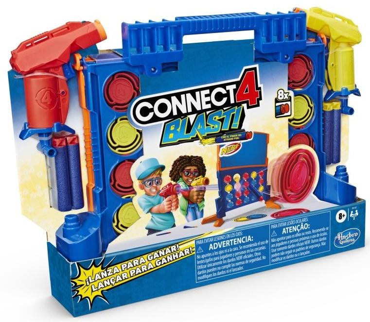 Połącz 4 Blast! game to ekscytująca i aktywna gra, w której gracze strategicznie strzelają do kolorowych dysków za pomocą dołączonego miotacza Nerf i rzutek piankowych Nerf. Gracze walczą w tym samym czasie, próbując być pierwszym graczem, który zdobędzie 4 dyski z rzędu w swoim kolorze. Pochwal się swoimi umiejętnościami celowania, strzelając z miotaczy Nerf w dyski. Gra jest przeznaczona dla 2 graczy i zawiera części do wykonania siatki Connect 4, a także niebieskie, czerwone i żółte dyski, 2 kolorowe miotacze Nerf i 8 kolorowych rzutek piankowych Nerf.