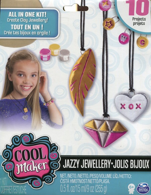 Zestaw do tworzenia biżuterii z licznymi akcesoriami. Zawartość: 1 gliniany krążek 20 haczyków do przywieszania 10 zapięć do bransoletek i naszyjników 6 foremek do ciastek 4,5 m sznurka 3 farby różnego koloru po 5 ml pieczątka, pędzel instrukcja. Wiek 6+