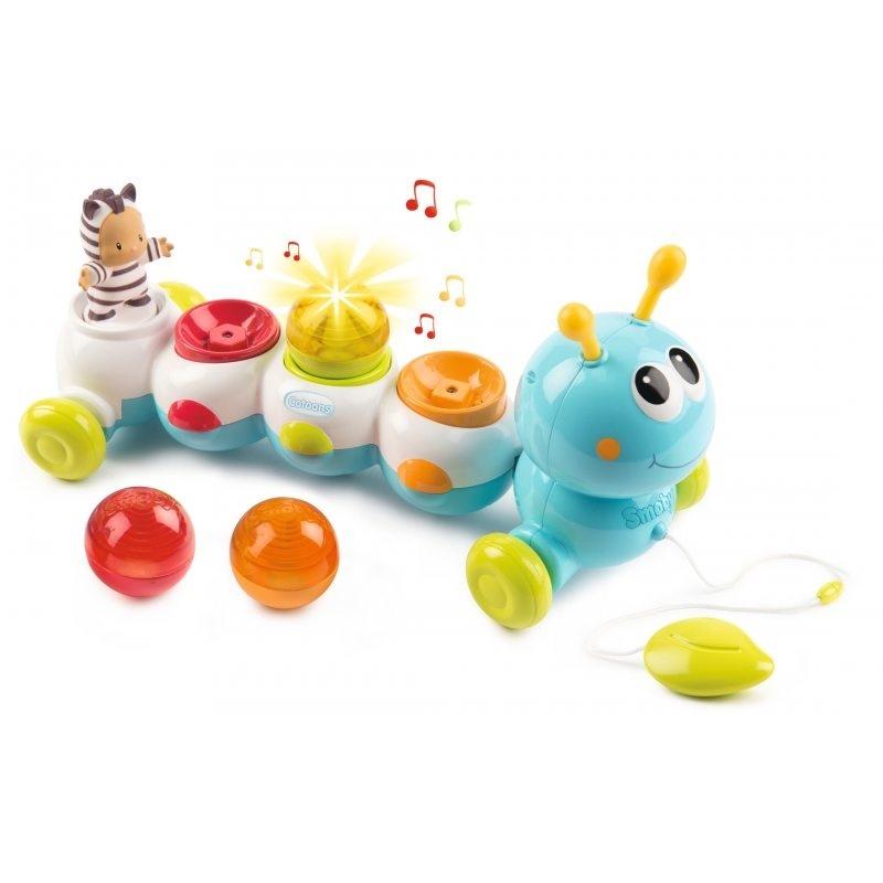 Gąsienica do ciągnięcia na sznureczku, z kolorowymi światełkami i efektami dźwiękowymi (dźwięk i światło oznajmia, że kulka została odpowiednio dopasowana). W zestawie wyjmowana figurka Punky. Wymiary: 32 x 13 x 16 cm.