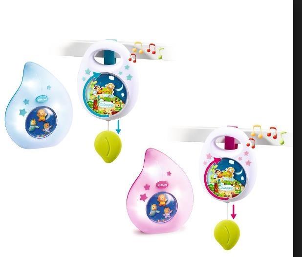 Urocza pozytywka z melodią i obracającym się obrazkiem, uruchamiana po pociągnięciu za listek, możliwość przymocowania do łóżeczka, 2 rodzaje: niebieska lub różowa. Kompaktowa lampka rozprzestrzeniająca delikatnie światło, 2 tryby: światło stałe lub migające powoli, wyłącza się automatycznie po 20 minutach. Nie zawiera baterii. Towar wysyłany losowo.