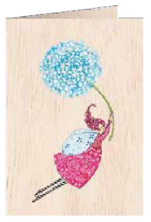 Cozywood Karnet drewniany C6 + koperta Kobieta z dmuchawcem