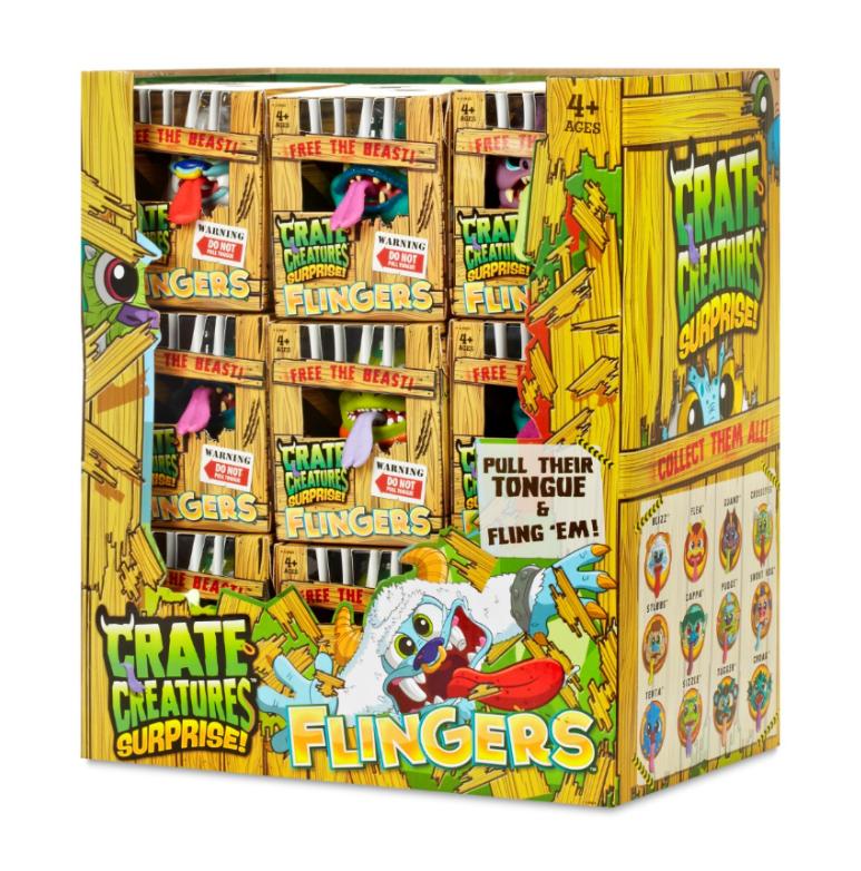 Crate Creatures Flingers to latające potwory, które wydają głośne i zabawne dźwięki, gdy pociągniesz za język, wypuścisz w powietrze i rzucisz do celu!