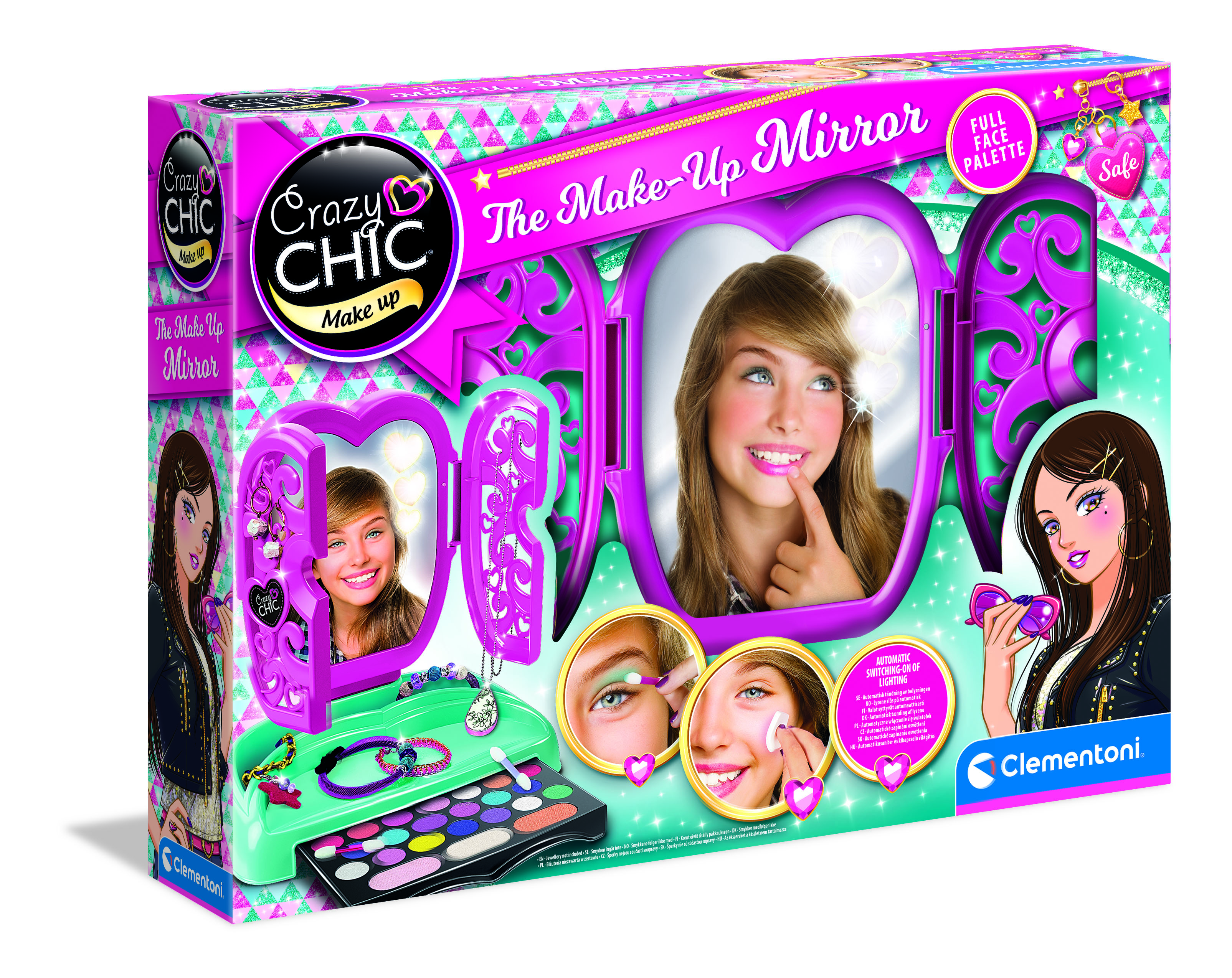 Wyrafinowana kasetka na kosmetyki do makijażu z bardzo stylowym podświetleniem lusterka, ułatwiająca tworzenie makijażu na miarę prawdziwego wizażysty lub wizażystki. Kasetka zawiera bogaty zestaw kosmetyków do makijażu, takich jak błyszczyki do ust, cienie do powiek czy podkłady. Oprócz tego znajduje się w nim aplikator i gąbka, dzięki którym dzieci mogą się malować zupełnie jak ich mamy. Podświetlenie włącza się po otworzeniu kasetki, tworząc odpowiedni nastrój i sprawiając, że zabawa jest jeszcze przyjemniejsza i bardziej wciągająca. Makijaż można łatwo zmyć wodą. Kosmetyki wykonano z przetestowanych, nietoksycznych składników i są całkowicie bezpieczne.