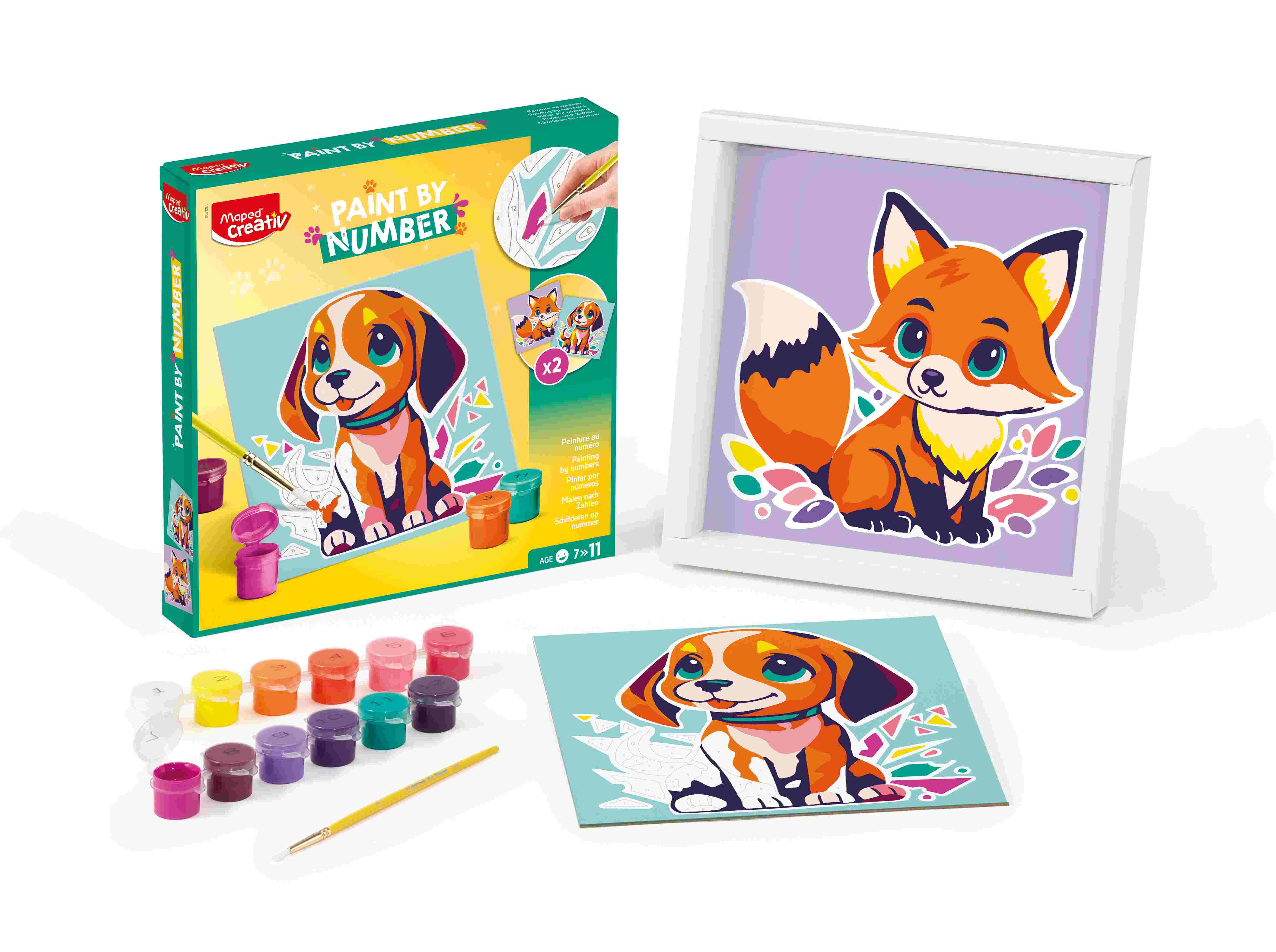 Malowanie po numerkach piesek i lisek Obrazki do malowania po numerach z motywami pieska i liska.