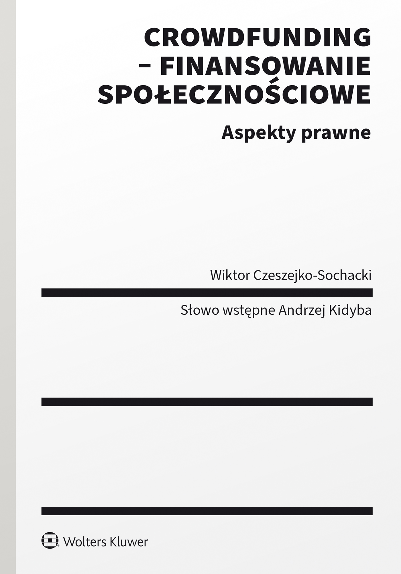 Finansowanie społecznościowe to alternatywa dla tradycyjnych źródeł pozyskiwania kapitału zewnętrznego, zwłaszcza gdy banki i inwestorzy niechętnie lokują pieniądze w ryzykowne projekty. Monografia w prosty i zwięzły sposób przedstawia dostępną wiedzę na temat crowdfundingu w Polsce i w Unii Europejskiej. W ilustrowany sposób wskazuje istotne zależności między przepisami prawa polskiego oraz unijnego, wraz ze wskazaniem, które należy w poszczególnych przypadkach zastosować. Poradnik posłuży prawnikom oraz przedstawicielom branży artystycznej oraz charytatywnej. Zainteresuje również ekspertów do tworzenia, prowadzenia i rozbudowy platform crowdfundingowych zgodnie z nowymi zasadami.
