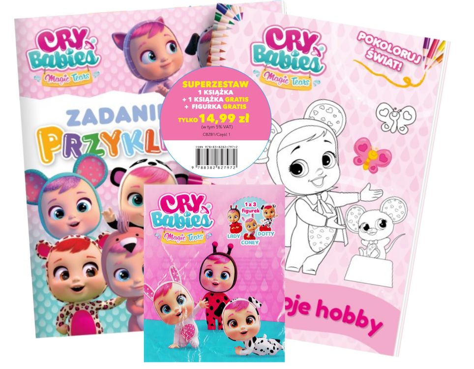 Wejdź do magicznego świata Cry Babies i przeżyj wyjątkową przygodę pełną kolorów, naklejek i niespodzianek! W zestawie znajdziesz 2 książeczki pełne zabawy i kreatywnych zadań oraz losową figurkę jednej z ulubionych bohaterek - Coney, Dotty lub Lady.
