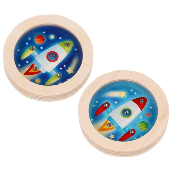 Klasyczna kieszonkowa gra ćwicz cierpliwość dla maluchów! Dziecko ćwiczy zręczność rączek, skupienie uwagi i cierpliwość. Teraz z ciekawym motywem rakiety. Zabawka doskonale sprawdzi się jako mały upominek, a dzięki niewielkim rozmiarom nadaje się do zabrania w podróż. Wymiary: 8 x 1.5 cm Materiał: drewno, metalowe kulki Wiek: 5+