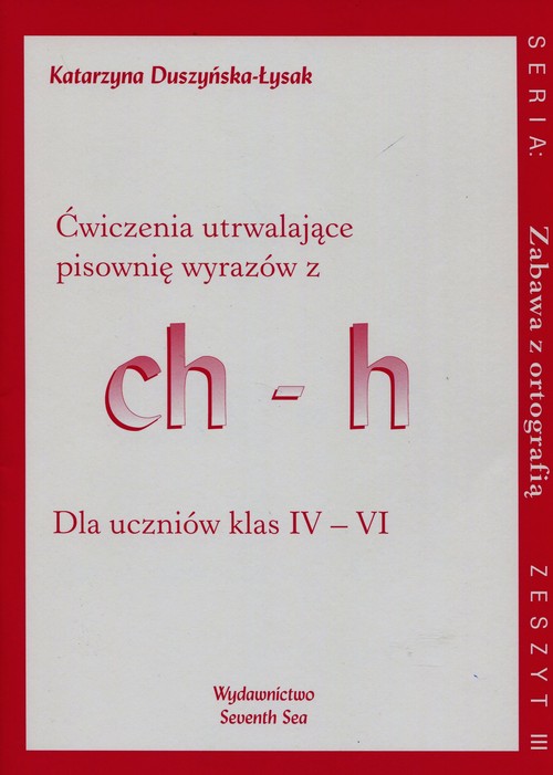 Ćwiczenia pozwalają w przyjemny sposób poznać i zapamiętać zasady pisowni, jak również utrwalić prawidłowe wzorce wyrazów z ch i h nieobjaśnionym, czyli niedającym się wytłumaczyć zasadami ortograficznymi. Poprzez powtarzanie i wielokrotne zapisywanie tych samych słów podczas wykonywania różnych ćwiczeń - dziecko zapamiętuje ich prawidłową pisownię. Zeszyt ten przygotowany jest dla dzieci w wieku od 10 do 12 lat. Można też z niego korzystać podczas pracy z uczniami klas gimnazjalnych. Książka składa się z 24 kart. Każda karta zawiera pięć ćwiczeń - na pięć dni tygodnia. Zadania są tak zaprojektowane, żeby wykonanie jednego nie zajmowało więcej czasu niż 10 - 15 min. Taki rozkład materiału pozwala na utrzymanie systematyczności pracy.