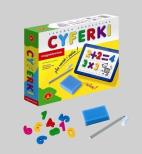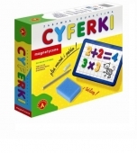 ,,Cyferki magnetyczne"" z metalową tablicą, mazakiem i gąbką to zabaw- ka dla przedszkolaków zaczynających naukę liczenia. Kolorowe, przestrzenne cyferki to dla dziecka atrakcyjne rekwizyty zabawy, dzięki którym poznawanie cyfr i zrozumienie zasad podstawowych działań matematycznych nie jest nudnym obowiązkiem. Znajdujący się w pudełku mazak i gąbka urozmaicają jeszcze zabawę. Umożliwiają dziecku rysowanie i pisanie na tablicy, a każdy rysunek daje się łatwo i szybko zetrzeć gąbką, co pozwala na rysowanie następnych.Gra dla graczy powyżej 5 roku życia.