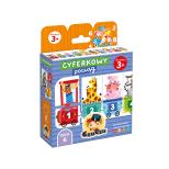 Długi (aż 68 cm!) puzzlowy pociąg przewozi kolorowe wagoniki, a w nich przeróżne zwierzątka, towary i rośliny.