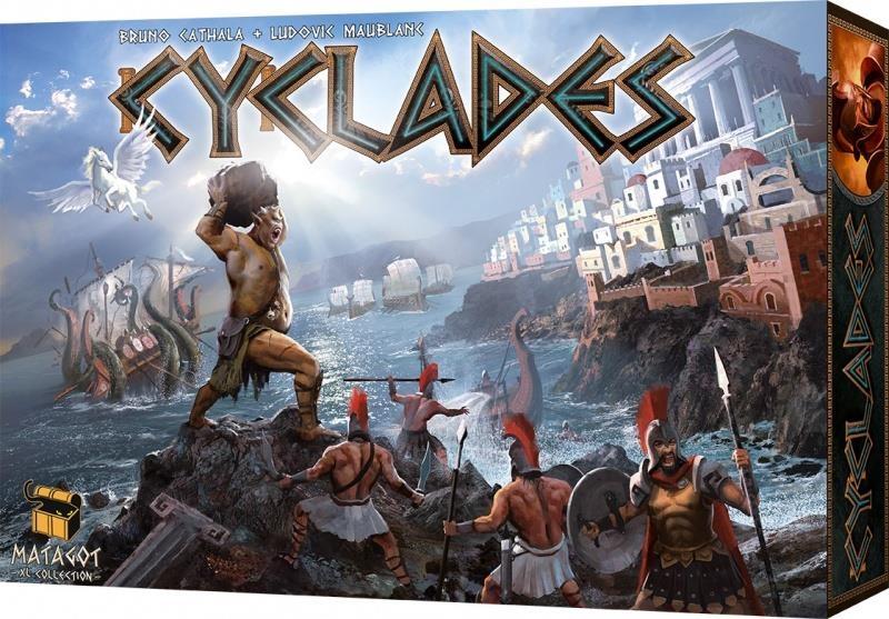 Wybierz się w podróż do archipelagu Cyklady w czasie złotego wieku antycznej Grecji. Rekrutuj oddziały, buduj okręty, wznoś fortece, konstruuj metropolie, wzywaj mitologiczne istoty i módl się o pomoc do Bogów Olimpu. Walka o doprowadzenie twojego ludu do największej chwały stanie się legendą. Cyclady to gra, w której w ciągu 90 minut gracze będą mogli rozwijać swoje greckie miasta-państwa jednocześnie ostro konkurując i walcząc ze sobą. Trzeba będzie zadbać o ekonomię, wojsko, flotę, naukę i religię a wszystko to w prosty i emocjonujący sposób. Aby w danej turze móc rozwijać którąś ze sfer swojego państwa trzeba zdobyć przychylność odpowiedniego boga co czyni się w ciekawie skonstruowanej i emocjonującej licytacji. Bogowie pozwalają także na wykonanie odpowiednich dla swojej sfery wpływów akcji. Jeśli gracz chce rozwinąć się militarnie bądź atakować innych graczy, musi zdobyć przychylność Aresa. Jeśli zależy mu na rozwoju filozofii, musi wylicytować względy Ateny. Grę wygrywa gracz, który jako pierwszy będzie miał 2 metropolie, przy czym można je zdobywać przez podbój, rozwój filozofii i tradycyjnie konstruując. Gra jest przepięknie wydana i łączy prostotę zasad z wyrafinowaniem rozgrywki. Zawartość pudełka: 3-częściowa plansza 2 specjalne kości 98 żetonów złota 16 znaczników prosperity 17 kart mitologicznych stworzeń 16 kart filozofów 16 kart kapłanów 4 duże kafle bogów żetony budynków: 10 fortec 10 portów 10 świątyń 10 uniwersytetów 10 metropolii figurka krakena figurka minotaura figurka Medusy figurka Polifema figurka Chirona 5 zestawów w innych kolorach: 2 żetony ofiar 3 żetony terytorium 8 figurek floty 8 figurek hoplitów 1 ekran gracza 1 instrukcja Wiek graczy: 13+ Liczba graczy: 2-5 Czas rozgrywki: 60-90 minut