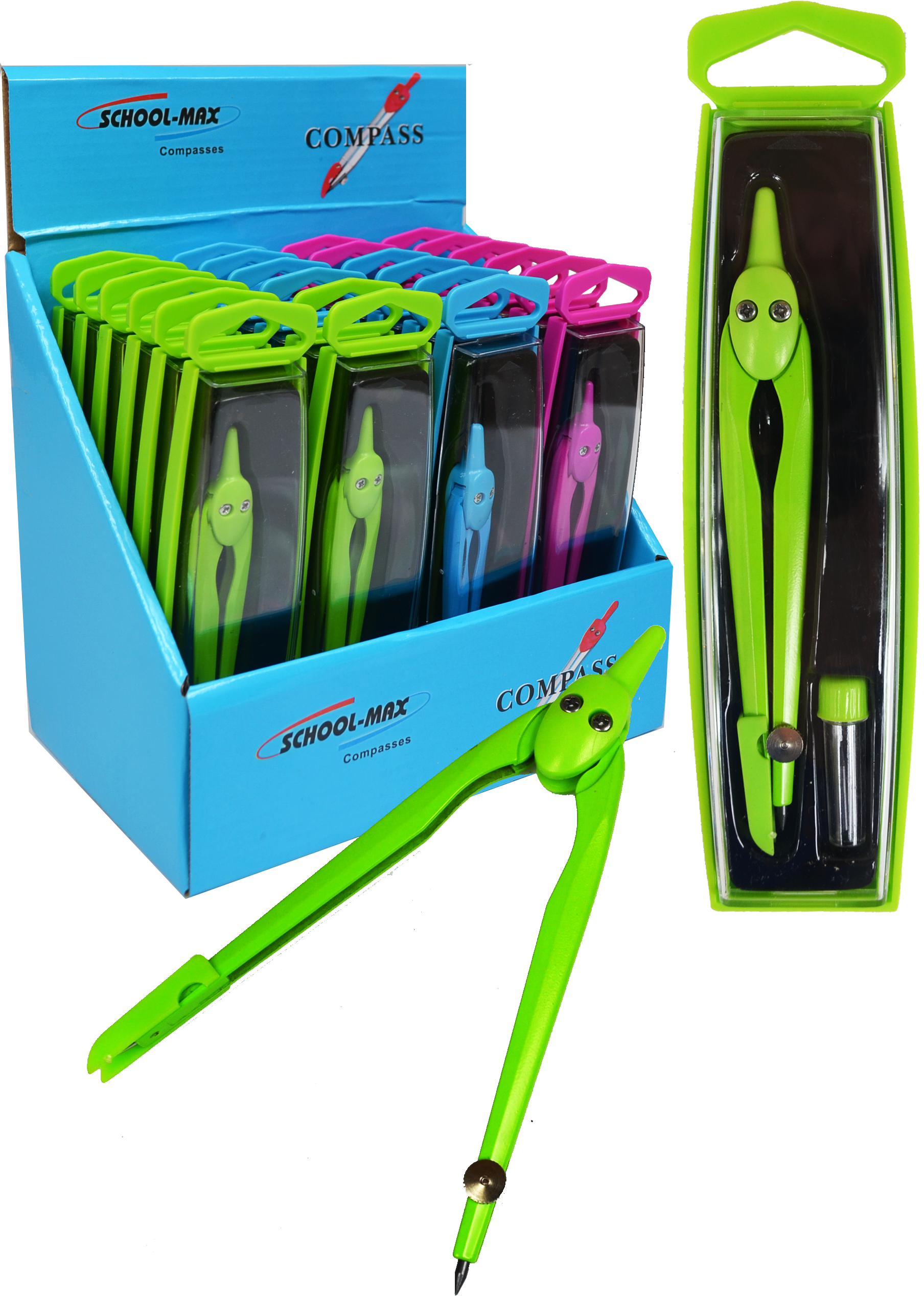 - szkolny cyrkiel metalowy z kolorowym wykończeniem