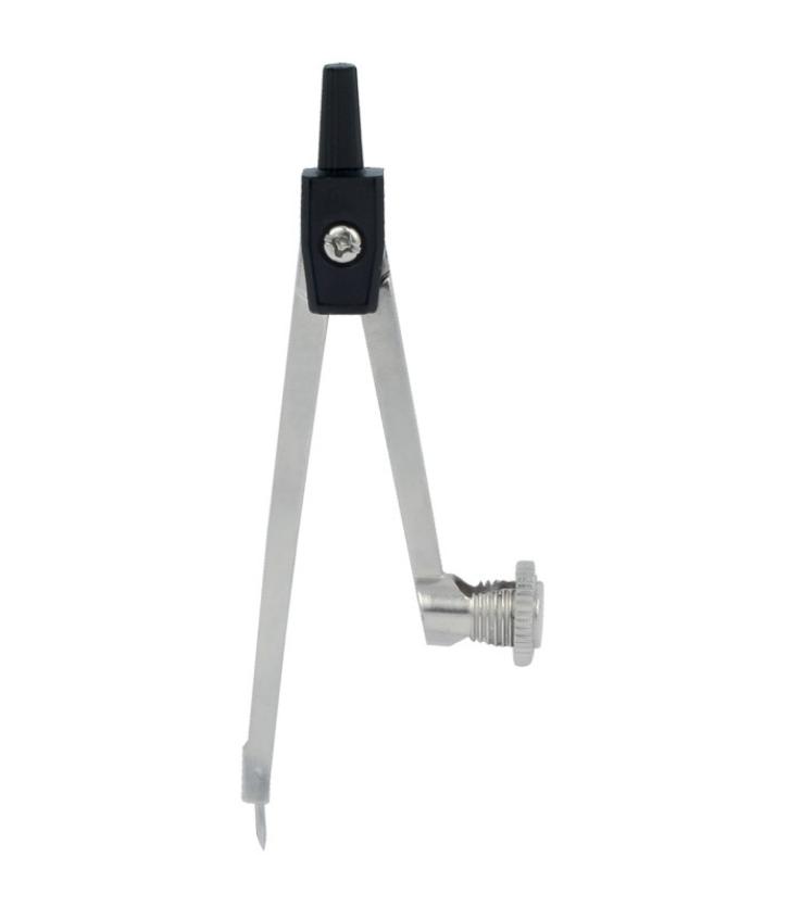 Metalowa konstrukcja, regulowany uchwyt na ołówek, długość cyrkla: 105 mm.