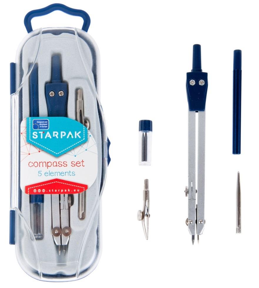 Opakowanie Cyrkiel metalowy + zestaw kreślarski 5el.