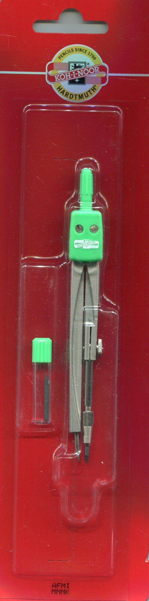 Cyrkiel metalowy zielony w zapasowym rysikiem.