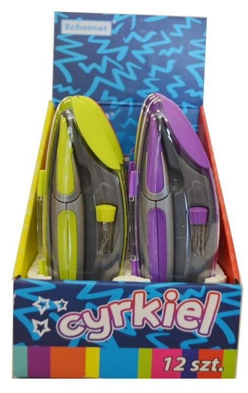 - szkolny cyrkiel metalowy z kolorowym wykończeniem
