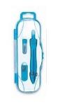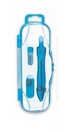 Metalowy cyrkiel z grafitem 2mm. W komplecie pojemnik na zapasowe grafity oraz mini temperówka do grafitów. Całość w kolorowym etui z zawieszką.