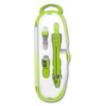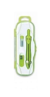 Metalowy cyrkiel z grafitem 2mm. W komplecie pojemnik na zapasowe grafity oraz mini temperówka do grafitów. Całość w kolorowym etui z zawieszką.