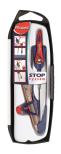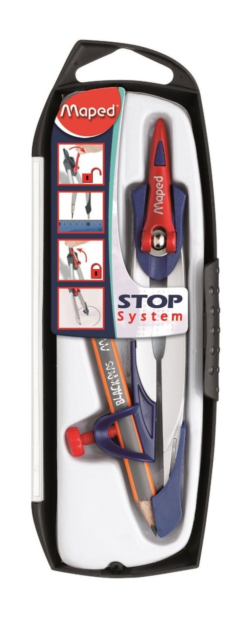 Cyrkiel metalowy STOP SYSTEM w plastikowym etui w zestawie z ołówkiem. Opatentowany system blokady ramion w określonej pozycji. Specjalna nakładka na igłę zabezpiecza przed skaleczeniem. JS 1 szt.