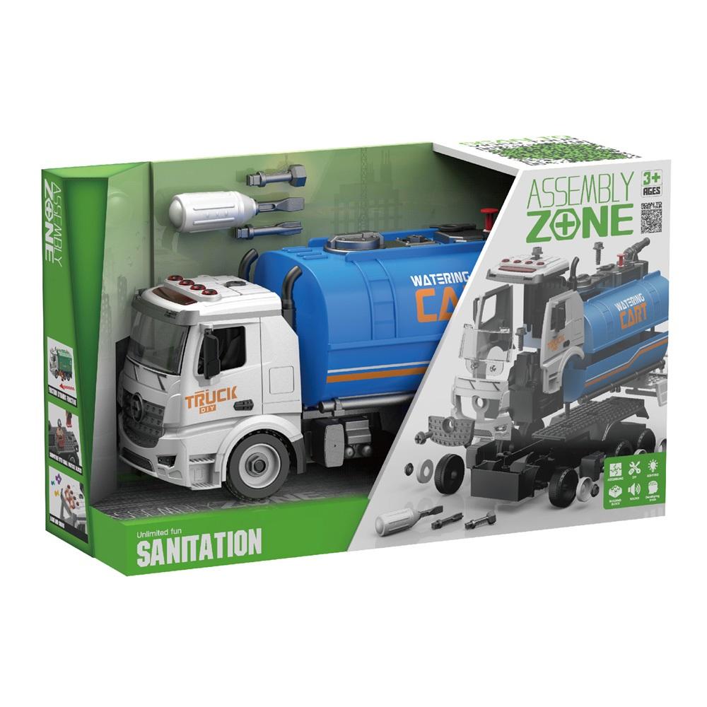 Cysterna, którą można rozkręcić i skręcić. Pryska wodą. Efekty dźwiękowe i świetlne. Wymagane baterie - 3 x AG13 (dołączone). Wymiary opakowania: 38 x 13 x 22,5 cm.
